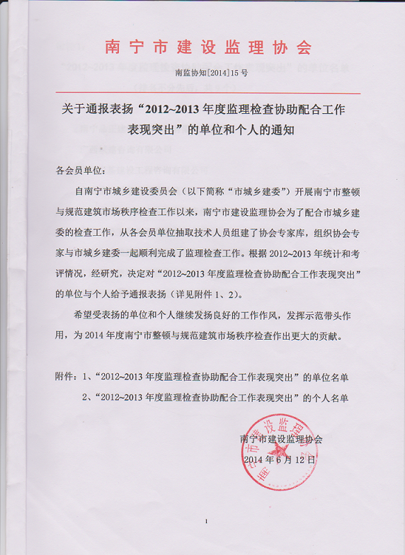 來源:南寧市建設監(jiān)理協會 發(fā)表時間:2014-07-03 10:07:19
